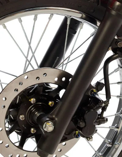 - Freno trasero de tambor en una moto que puede usarse en caminos difíciles.