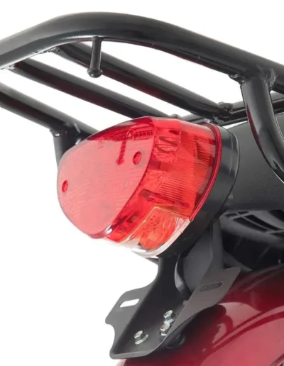 - Posapiés engomados, parador central y lateral, además de parrilla trasera funcional.