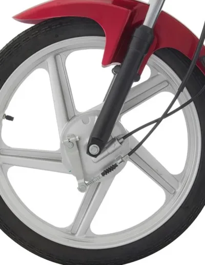 - Rines de aluminio deportivos que la alejan del look clásico de moto de trabajo.