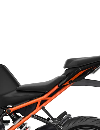 KTM elevó el semimanillar 15 mm, y el asiento ahora es más ancho, tiene más espuma y es antideslizante, haciendo la moto mucho más cómoda que su predecesora para el uso diario.